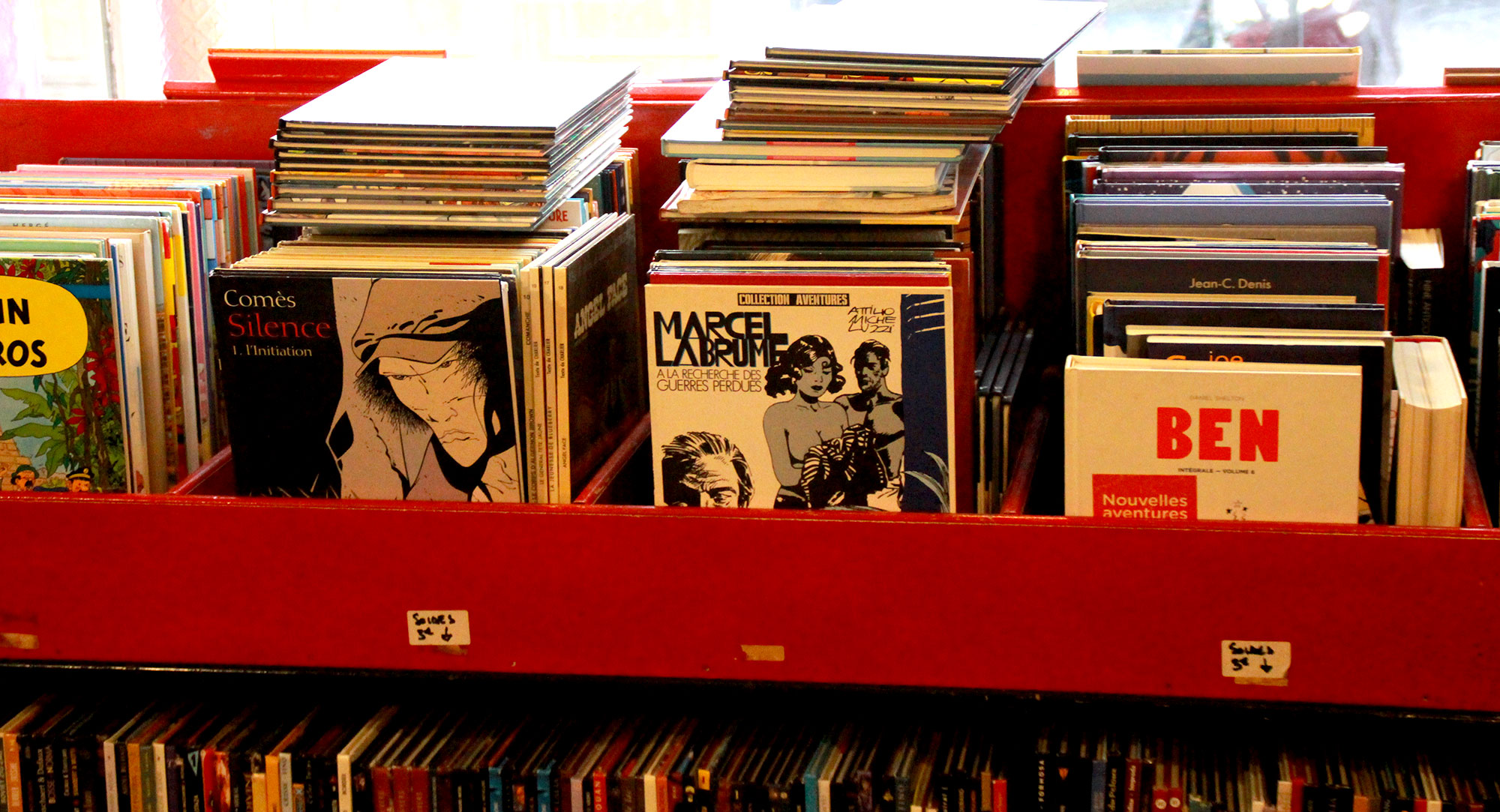 Le Rideau, mondialement connu pour son choix expérimenté dans le domaine du disque vinyle, cache, fort mal en vérité, tout un gros tas de BD de qualité ! Elles sont partout devant, derrière, partout.